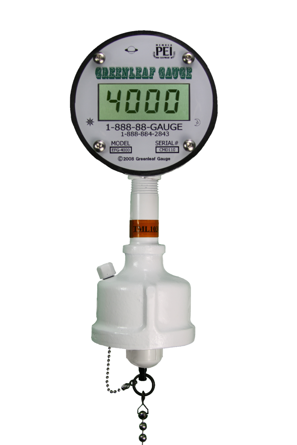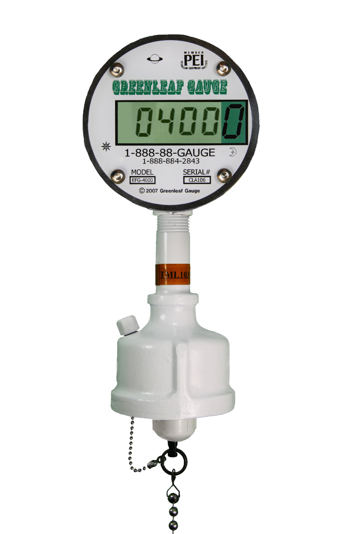 Typically all Greenleaf Gauge products are pre-calibrated by the manufacturer. The calibrations are based on the following information: shape and dimensions of the tank, actual tank capacity, and the type of liquid to be measured. These calibrations can also be easily performed in the field as needed by the operator. The four digit LCD display allows the operator to monitor tanks up to 10,000 units (gallons, liters, pounds, etc.). |