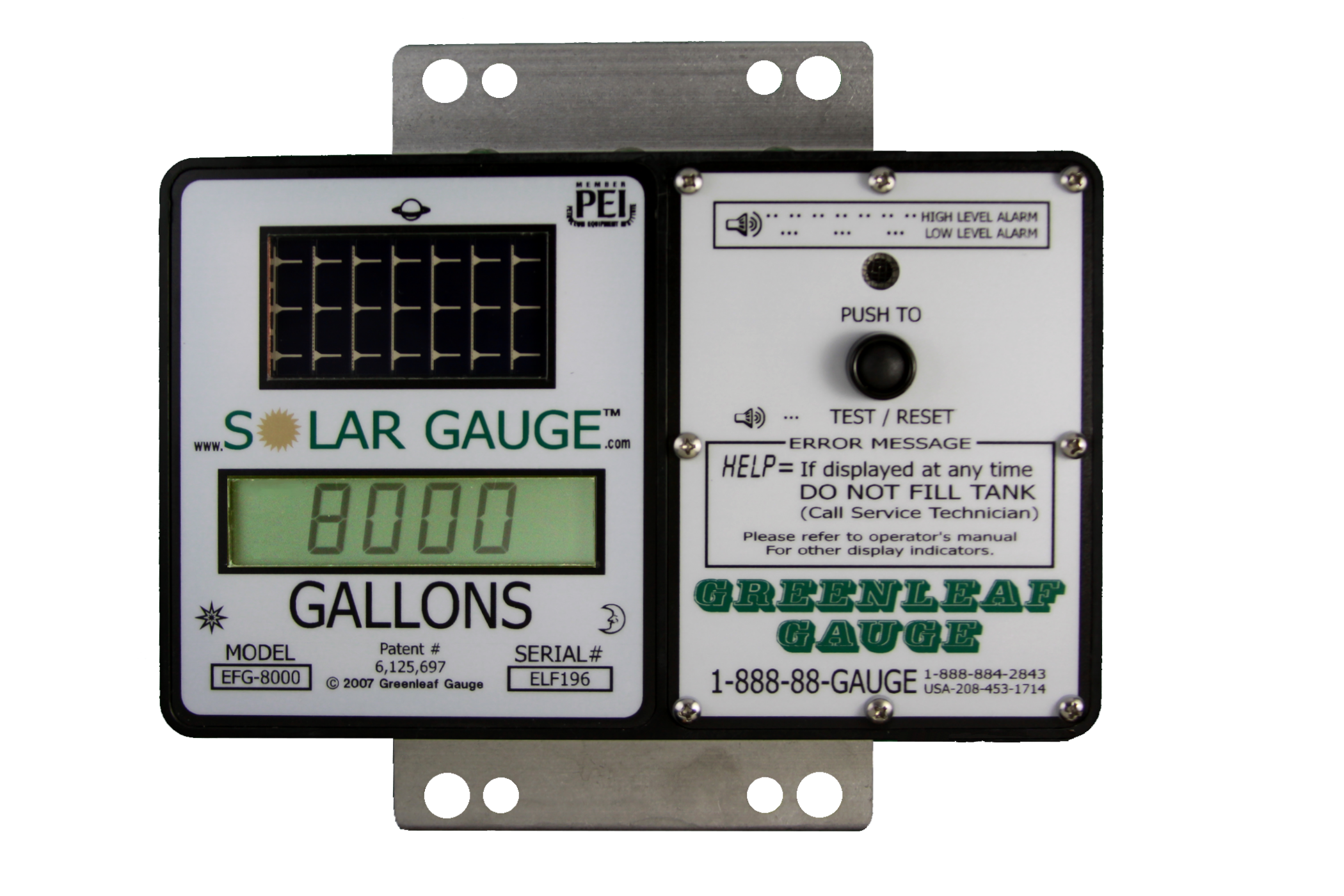 - Solar powered gauge and alarm with customer replaceable backup battery.